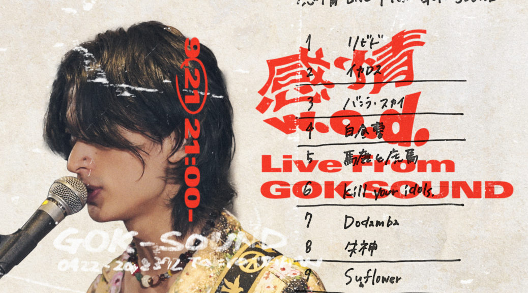 New Album『感情』全収録曲一発録りのスタジオライブ 「感情 Live From GOK SOUND」 9/21(水) 21:00~ プレミア公開決定!